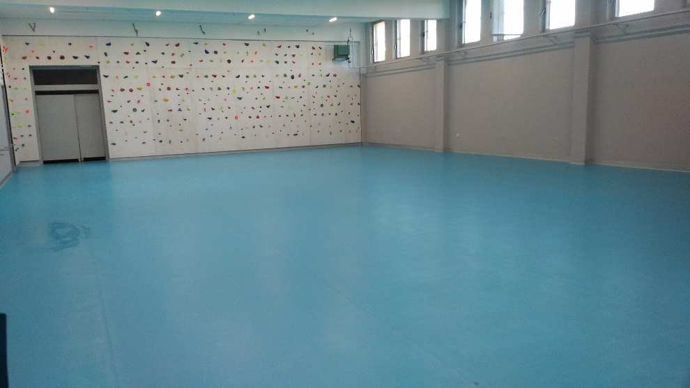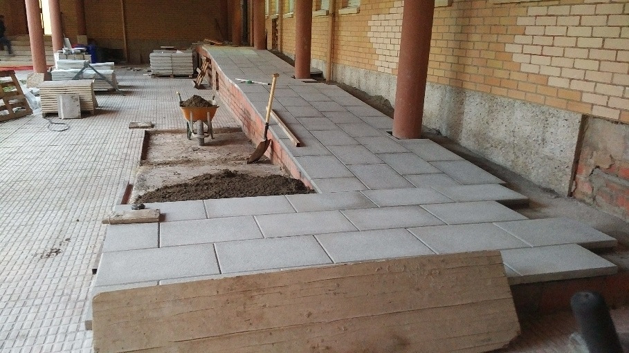 _ Obras de reforma_ sustitución del pavimento del gimnasio , ya que se encuentran en mal estado, y dotación de un falso techo absorbente nueva iluminación.