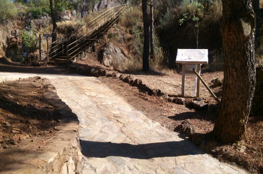 • SENDERO DE ACCESO PARA MINUSVÁLIDOS DE 240 m DE LONGITUD EN PIZARRA IRREGULAR Y BORDILLO DE HORMIGÓN.